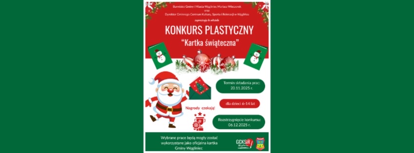 Serdecznie zapraszamy dzieci w wieku 6–14 lat z Gminy Węgliniec do udziału w konkursie plastycznym na najpiękniejszą kartkę świąteczną! 🎅🖍️