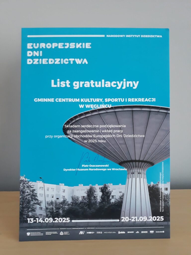 List gratulacyjny dla Gminnego Centrum Kultury, Sportu i Rekreacji w Węglińcu