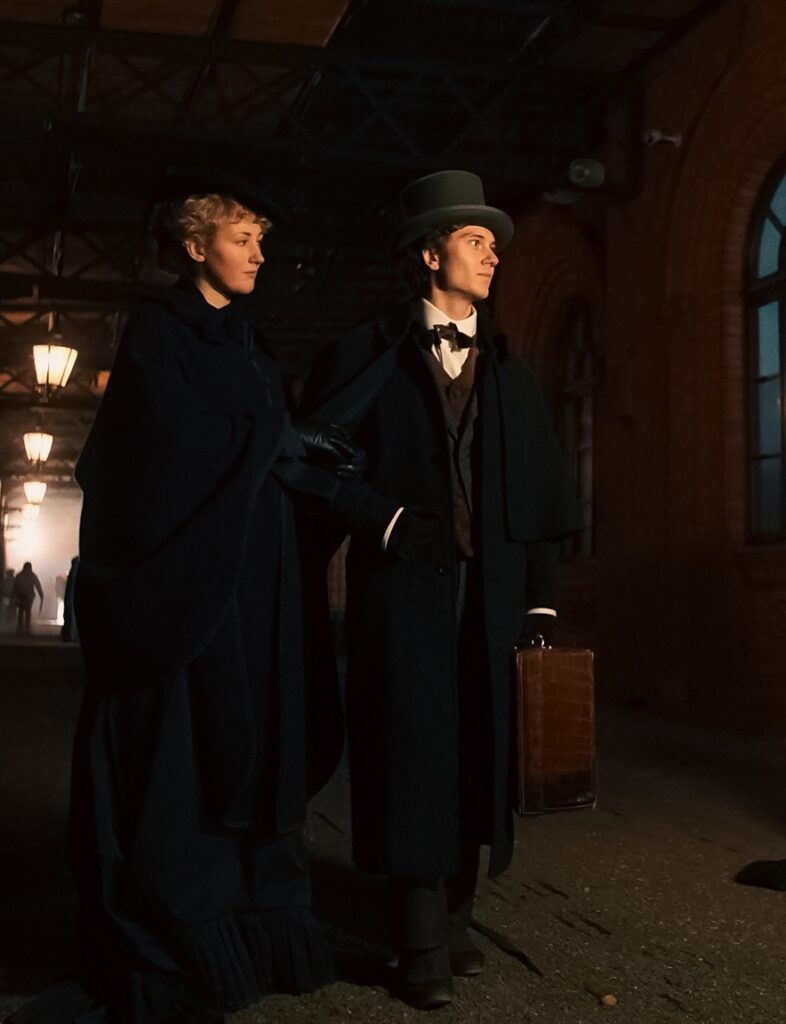 W dniach 4–7 listopada na terenie stacji kolejowej w Węglińcu powstawały zdjęcia z wykorzystaniem zabytkowej lokomotywy parowej oraz specjalnie zaaranżowanego na potrzeby filmu eleganckiego XIX-wiecznego wagonu, w którym nagrano jedne z najważniejszych scen ekranizacji.